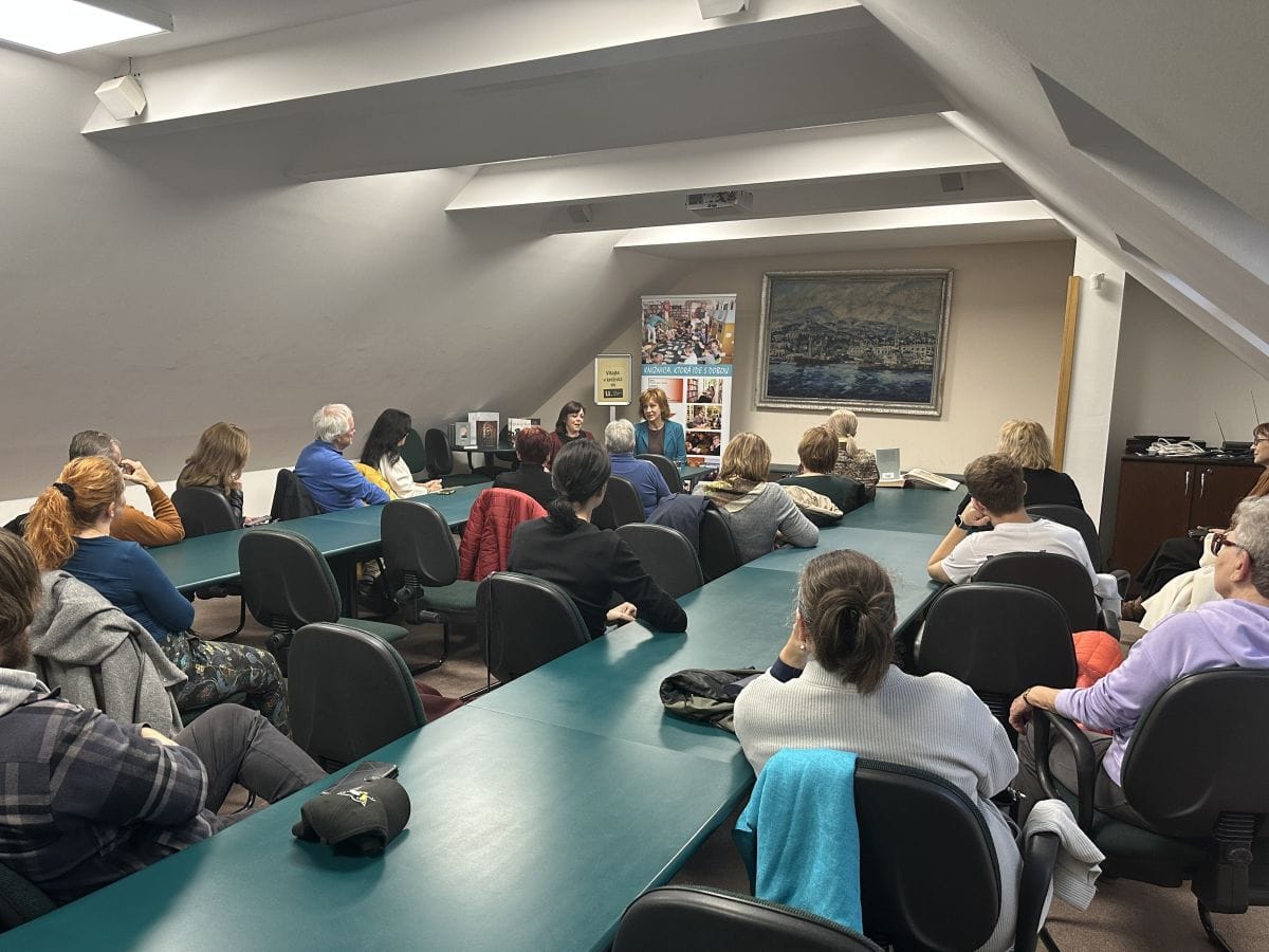 V polovici októbra sme mali obidve prednášku a besedu s čitateľmi v Knižnici Michala Rešetku v Trenčíne. Knižnica v súčasnosti prechádza rekonštrukciou a tak sa podujatie konalo v Pasáži Zlatá fatima. Bolo super, Trenčín je srdcovka (aj kvôli kráľovnej Barbore Celjskej)
