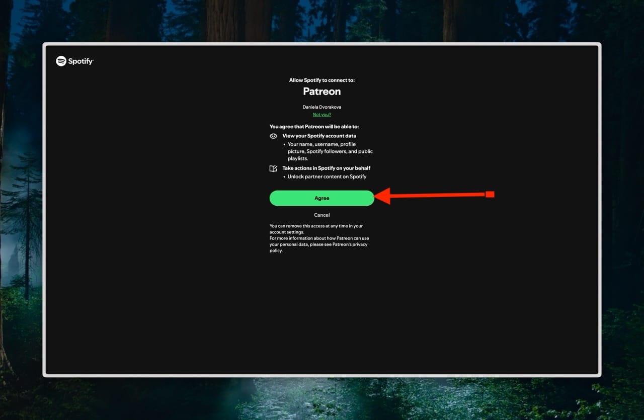 - Súhlaste s prepojením na Spotify:
