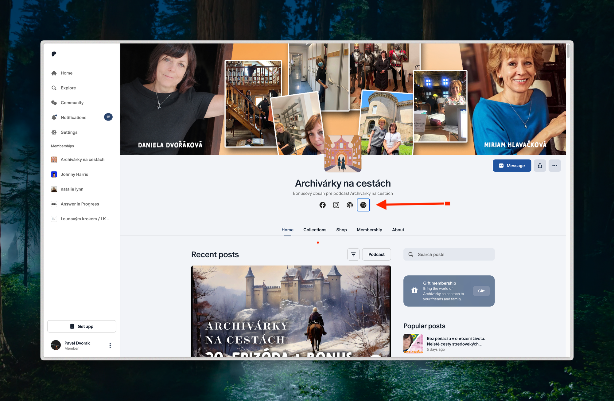 Jedna z dôležitých funkcií Patreonu je priame napojenie na Spotify. Podcast aj s bonusovými časťami tak môžete púšťať priamo na mieste, kde pravdepodobne počúvate všetky podcasty. Prepojenie Patreonu so Spotify je veľmi jednoduché: